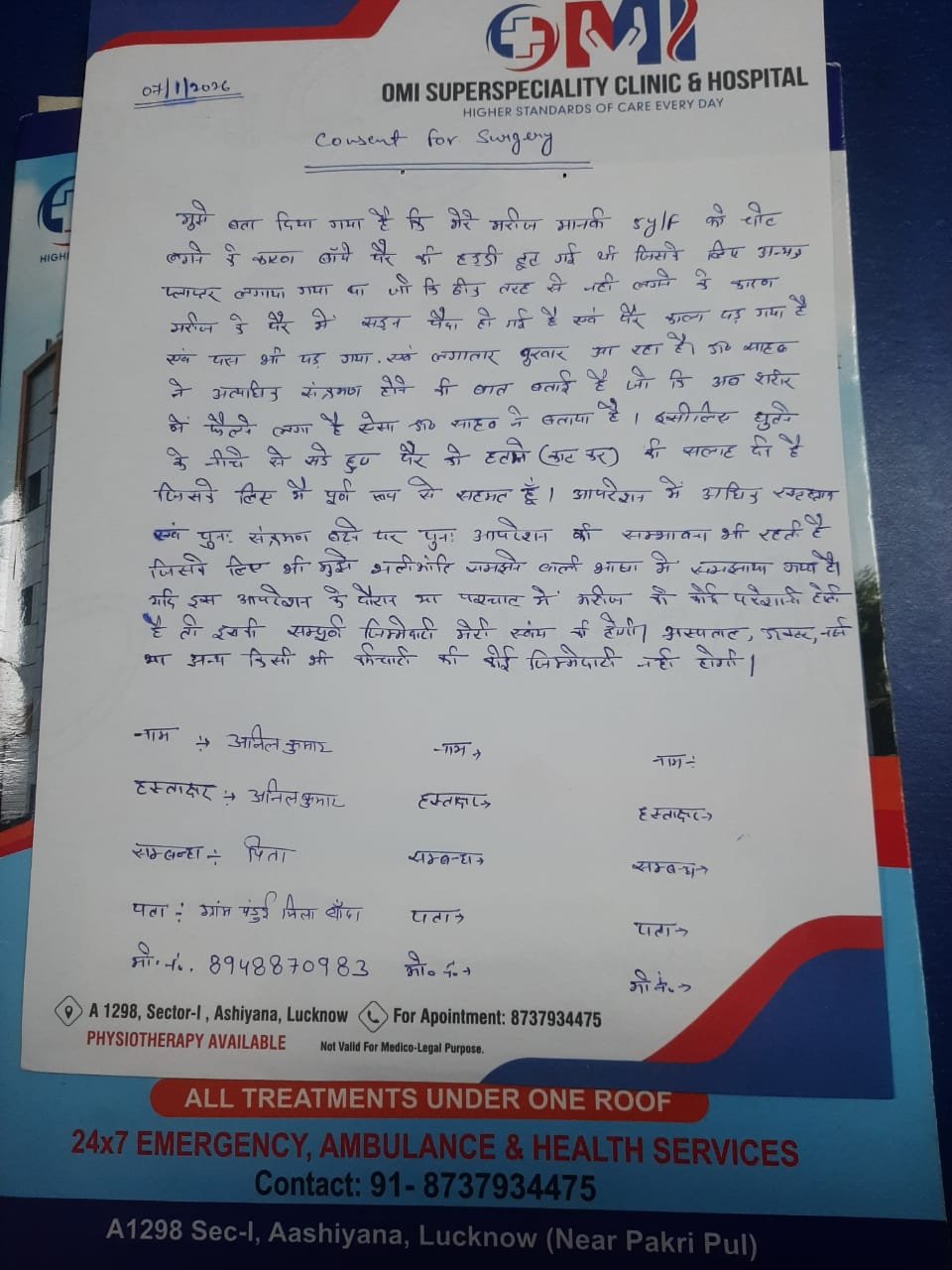 आपको बताते चलें कि मामला थाना कोतवाली नगर क्षेत्र के पडुई गांव निवासी अनिल की पांच वर्षीय पुत्री मानवी २३जनवरी की रात छत से गिर गयी थी जिससे उसके जांघ की हड्डी टूट गई थी और उसे ईलाज के लिए रानी दुर्गावती मेडिकल कॉलेज में भर्ती कराया जहां उसका ईलाज विनीत सिंह ने किया और आपरेशन के लिए ३०जनवरी की तारीख नियत की मां का आरोप है कि हमसे पंद्रह हजार रूपए भी आपरेशन के लिए जमा कराए। लेकिन २३ तारीख को डाक्टर ने हमारी बच्ची मानवी का गलत तरीके व टाइट पट्टी बांध देने की वजह से पांव की नसों में ब्लाकिंग हो गई इससे नशों ने काम करना बंद कर दिया और पैर काला पड़ गया सडन पैदा हो गई। लेकिन इस दौरान डाक्टर व उसके वार्ड व्बाय ने एक भी बार चेक नहीं किया। लेकिन जब आपरेशन की नियत तारीख आयी तो पट्टी खोलकर देखा की मानवी का पैर काला पड़ गया सडन पैदा हो गई।आनन फानन में मानवी को लखनऊ मेडिकल कॉलेज के लिए रिफर कर दिया।मानवी के गरीब माता पिता बेचारे मानवी को लेकर लखनऊ पहुंचे और केजीएमयू में भर्ती कराया जहां एक अच्छे डाक्टर की टीम ने बताया कि पैर को गलत तरीके से बांधने व केयर/ईलाज न करने से पैर की नशें ब्लाक हो गई और उन्होंने काम करना बंद कर दिया और पैर में सड़न भी शुरू हो गई है अगर बच्ची की जिंदगी बचानी है तो पैर काटना पड़ेगा।हारे थके मां बाप कर ही क्या सकते थे। और एक भयावह राक्षस की काली करतूत से एक मासूम जिसने अभी तक खड़े हो अपना ठीक से बचपन तक नहीं देखा उसे कलयुगी राक्षस ने हमेशा हमेशा के लिए अपाहिज बना दिया।