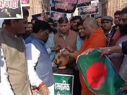 युवा कार्यकर्ताओं ने हिंदुओं पर जिहादी अत्याचार के आरोप लगाते हुए यूनुस सरकार के खिलाफ नारेबाजी की और सेक्टर-27 स्थित डीएम कैंप कार्यालय चौराहे पर पुतला दहन किया।
