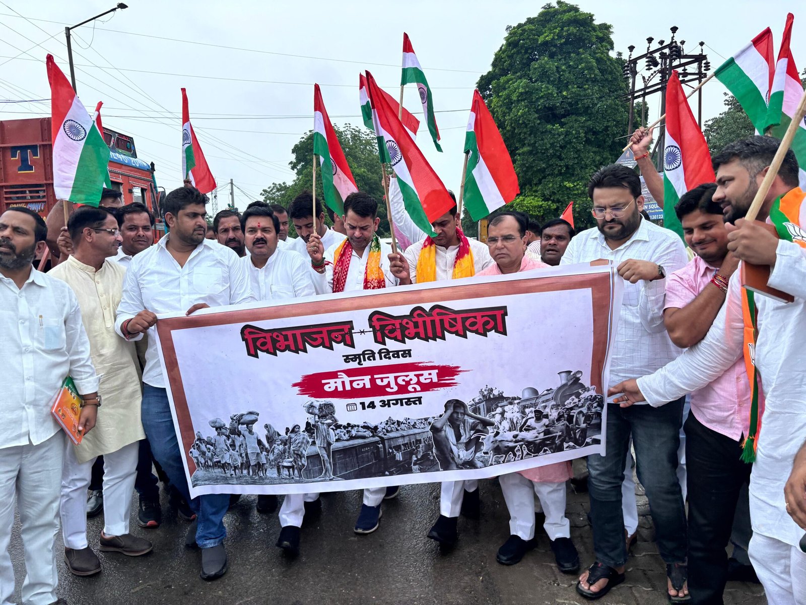 जिला अध्यक्ष अभिषेक शर्मा ने कहा कि देश विभाजन की जानकारी हर भारतीय को हो उसके लिये देश के यशस्वी प्रधानमंत्री मान्य श्री नरेन्द्र मोदी जी ने 2021 से विभाजन विभीषिका स्मृति दिवस के रूप में मनाने बताने का कार्य कर रही हैं मौन जलूस के दौरान सभी ने संकल्प लिया कि देश पर ऐसा भयावह समय कभी दोबारा न झेलना पड़े देश हमेशा एकजुट होकर सदभाव के साथ प्रगति के मार्ग पर चलता रहे और उन्होंने कहा 2014 कांग्रेस सरकार के कार्यकाल मे भारत की बराबरी पाकिस्तान से होती थी और अब भाजपा मोदी जी के नेतृत्व वाली सरकार अमेरिका से भी नहीं झुकती है ।