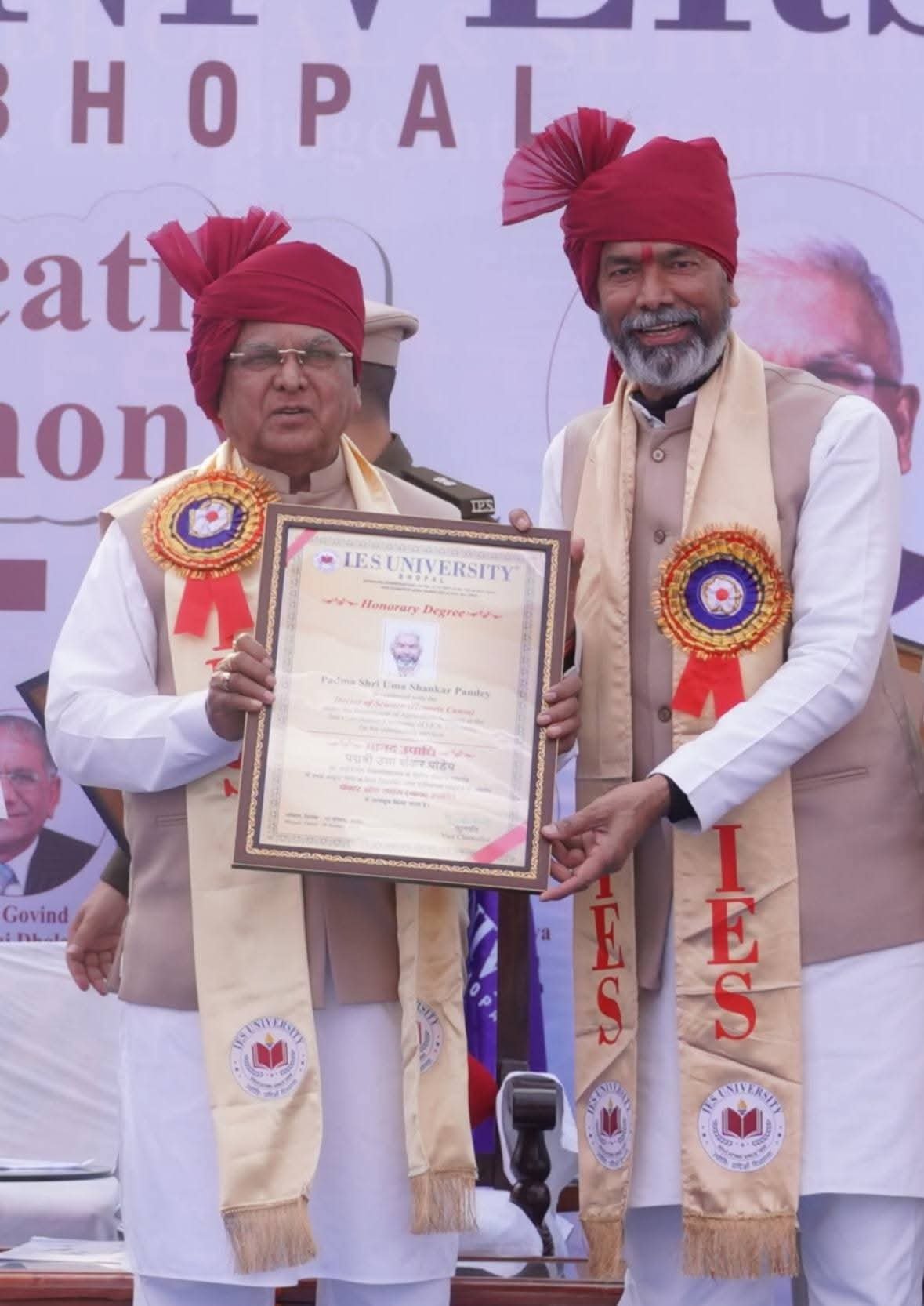 जल संरक्षण के क्षेत्र में उमाशंकर पांडे को मिली यह मानद उपाधि न केवल उनके संघर्ष और समर्पण की पहचान है, बल्कि उन लोगों के लिए भी प्रेरणा है जो सीमित संसाधनों के बावजूद समाज परिवर्तन की दिशा में कार्य कर रहे हैं। इस अवसर पर उमाशंकर पांडे ने भावुक होते हुए महामहिम राज्यपाल के प्रति कृतज्ञता व्यक्त की। साथ ही उन्होंने आईईएस विश्वविद्यालय के कुलाधिपति बी.एस. यादव का आभार जताते हुए कुलपति प्रो. डी.के. पांडे को साधुवाद दिया।